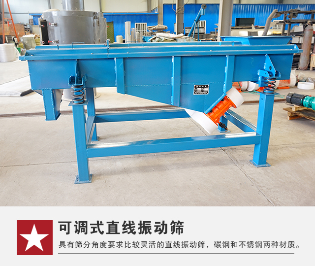 該設備主要是針對一些對直線振動篩篩分角度要求比較靈活的直線振動篩,該設備有碳鋼和不銹鋼兩種材質進行選擇。