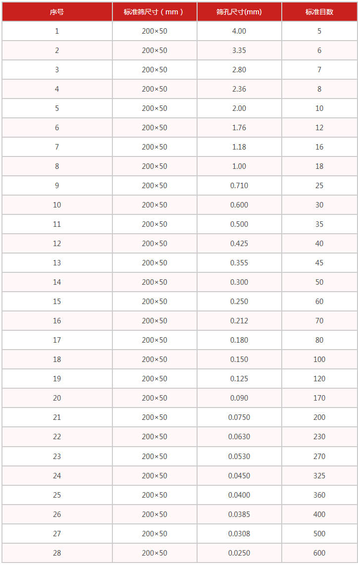 準試驗篩是以YZU立式振動電機作為整機振動源,通過振動電機帶動上部振動盤振動,再通過振動盤傳導至安放在振動盤上部Φ200篩框上,然后由需要檢測目數(shù)的篩框把小于篩面網(wǎng)孔的物料顆粒篩分至下層篩框,如此層層篩選,使每層試驗篩內(nèi)只留相同粒度的物料,達到不同粒度的分離并確定此物料的粒度組成,使Φ200型篩框中的物料能非常有效的起到過濾、分級、篩分目的。